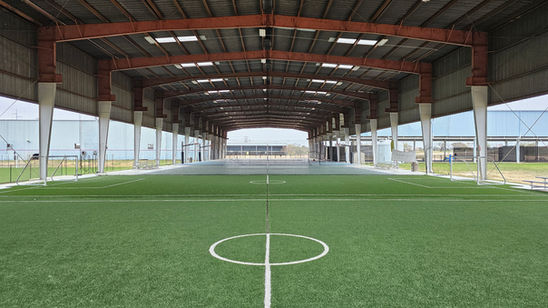 The Sports Complex at Quarry Park in Granite Shoals, Texas, is a state-of-the-art, covered multi-sport facility offering courts for basketball, soccer, tennis, and pickleball, alongside batting cages and a multipurpose artificial turf field.